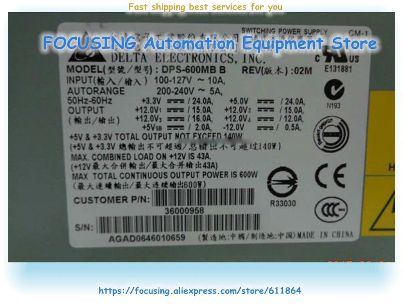 HIGH QUALITY New original DPS-600MB B server power supply 600W 36000958